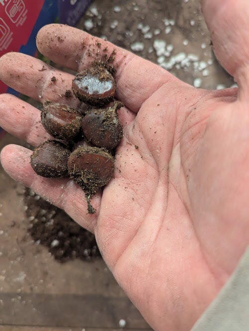 These 100% American chestnut seeds were carefully collected in our conservation orchard of vigorous trees. But, like all wild-type American chestnuts, they are susceptible to blight. Many of these wild-type mother trees survived multiple deliberate blight inoculations and some trees are over 30 years old.